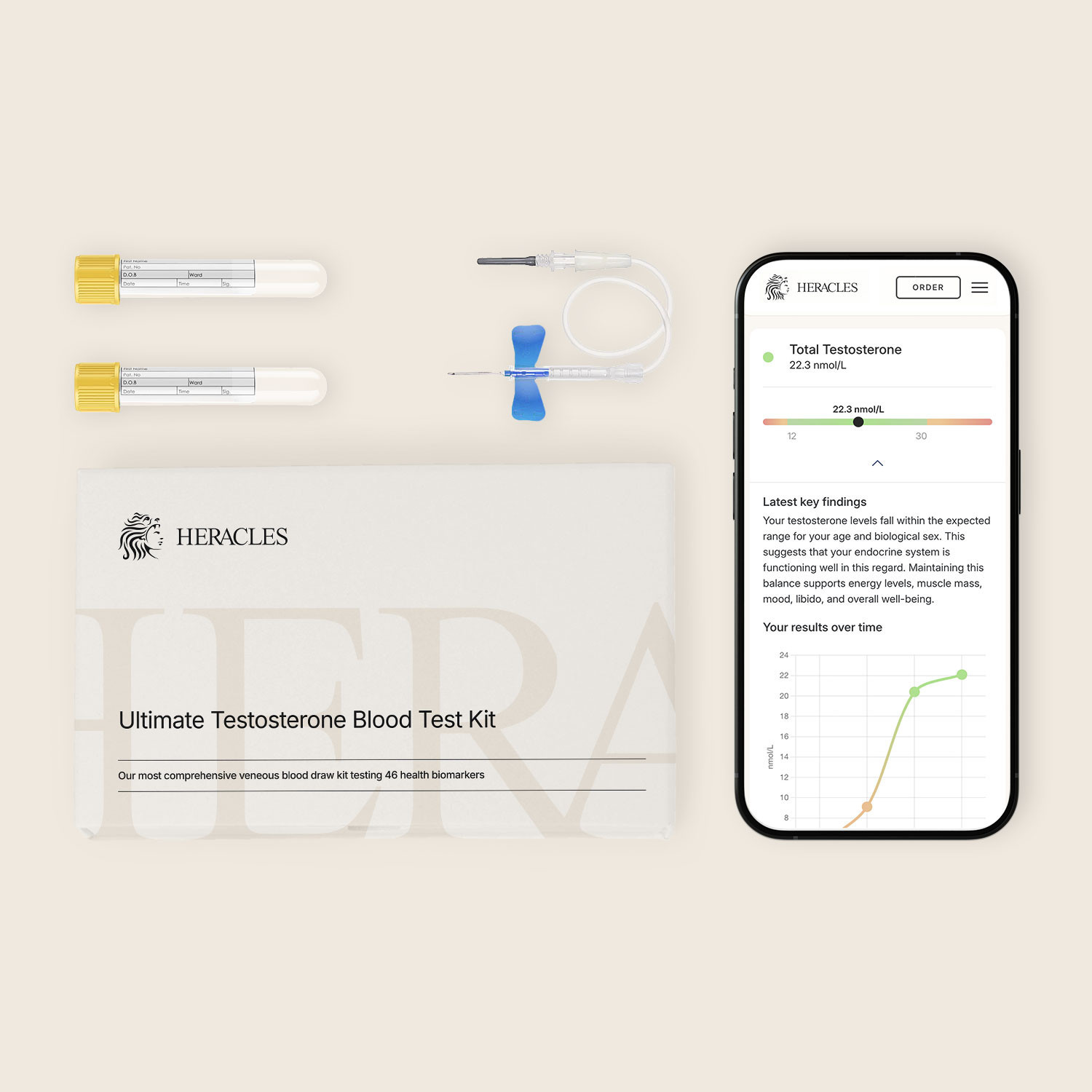 It all starts with a convenient blood test kit used to assess your testosterone levels at first glance.