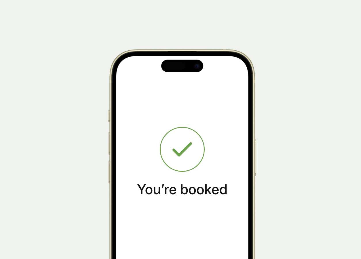 The service will contact you by email or phone to arrange your booking location, date and time.